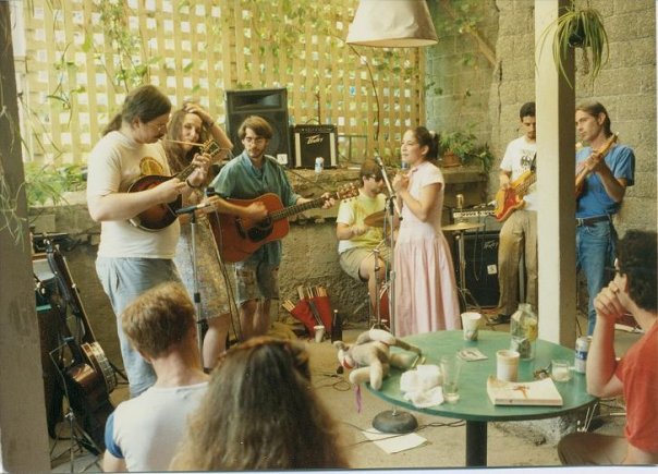 The Siren Sisters- From 1990-1992 I played with The Siren Sisters String Band, an Albany, NY-based alt. country group fronted by two female singers. We had tons of fun playing classic country, bluegrass, and some way cool originals. MP3s are below, and most of these feature solos by me on harmonica, mandolin, or banjo. In the early 1990s snapshot above, we are performing on the patio of the Half Moon Cafe, a bygone bohemian haunt on lower Madison Avenue in Albany. L.-r. - Me, Kathy Bush, Pat Mullaly, Dave Owens, Caroline Johnston, Joe Pasco (to whom thanks is due for the photo above), and Brian Wellbrock. - G.W. |